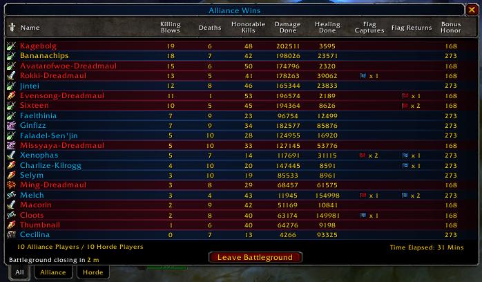 それでも今日はその辺を改善して何とか5分ってところ。といっても、殆どRog相打ちでMage VS Priになって勝ってるんだけれども。これは相手にヒーラー居ないって事考えて、もっとゆっくりやる必要があったみたい。